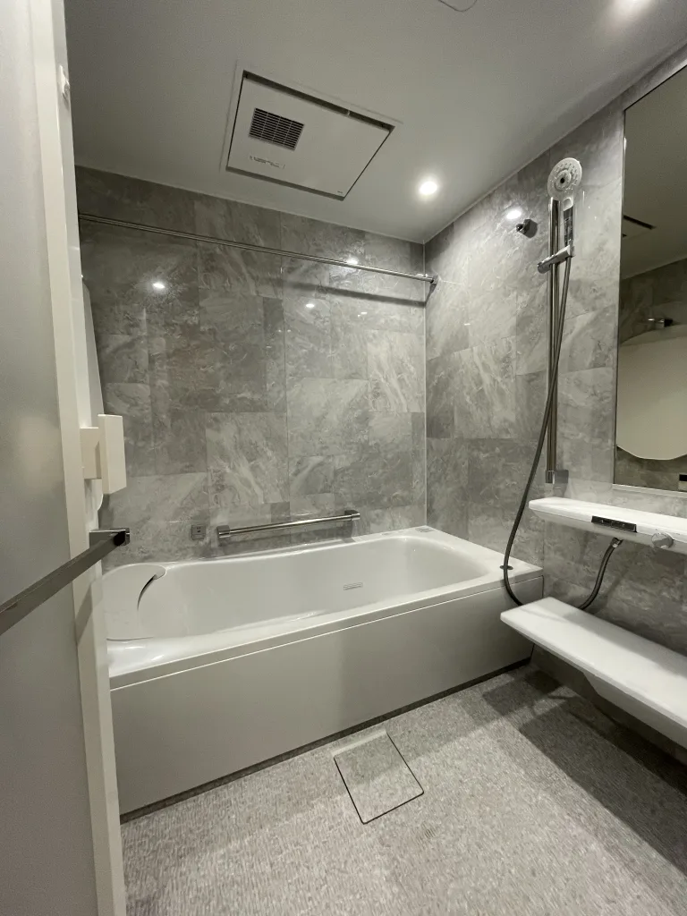 先日1歳半になる孫が自宅に泊まり、入浴前に暖房で温めて私と風呂に入りました。床が柔らか&暖かいのでニコニコでおもちゃで遊び、浴槽のステップにちょこんと座り、楽湯の水流にちょっと驚いていましたが、すぐに慣れておもちゃで遊びながら温まって行きました。ご相談から補助金振込まで約半年間ありがとうございました。」