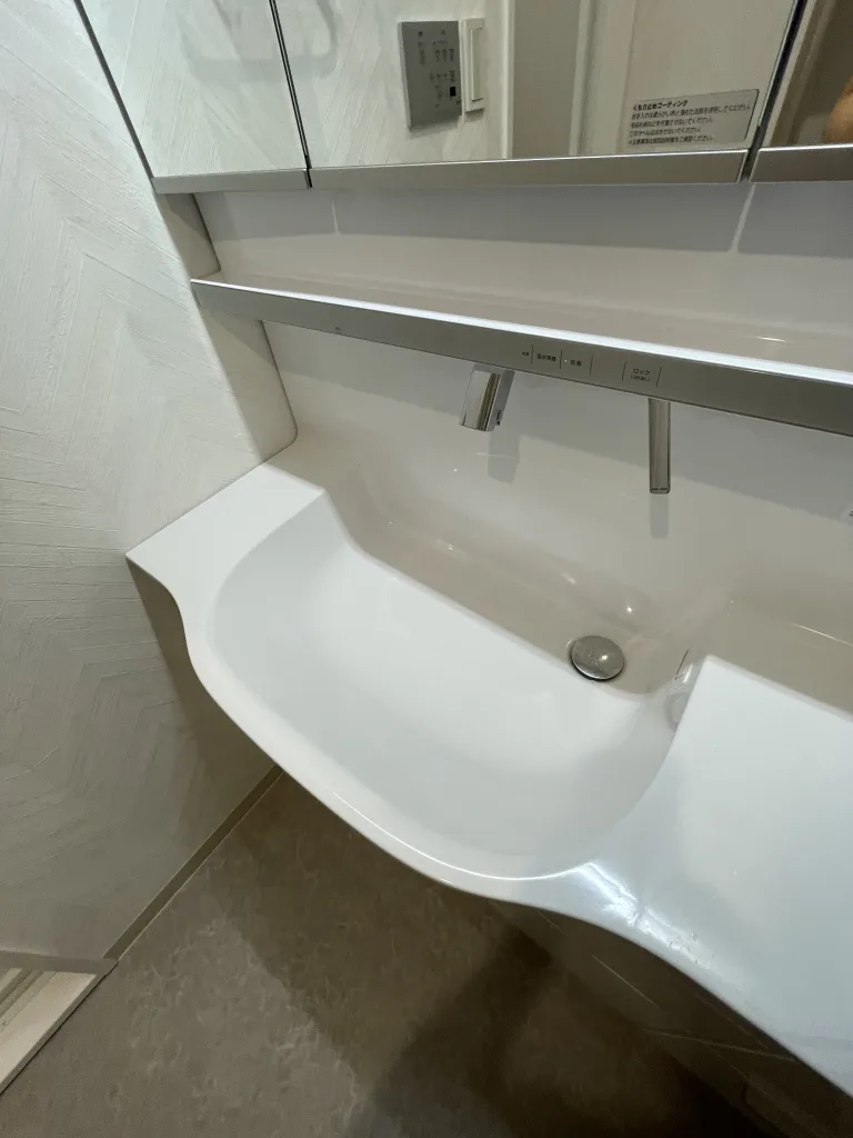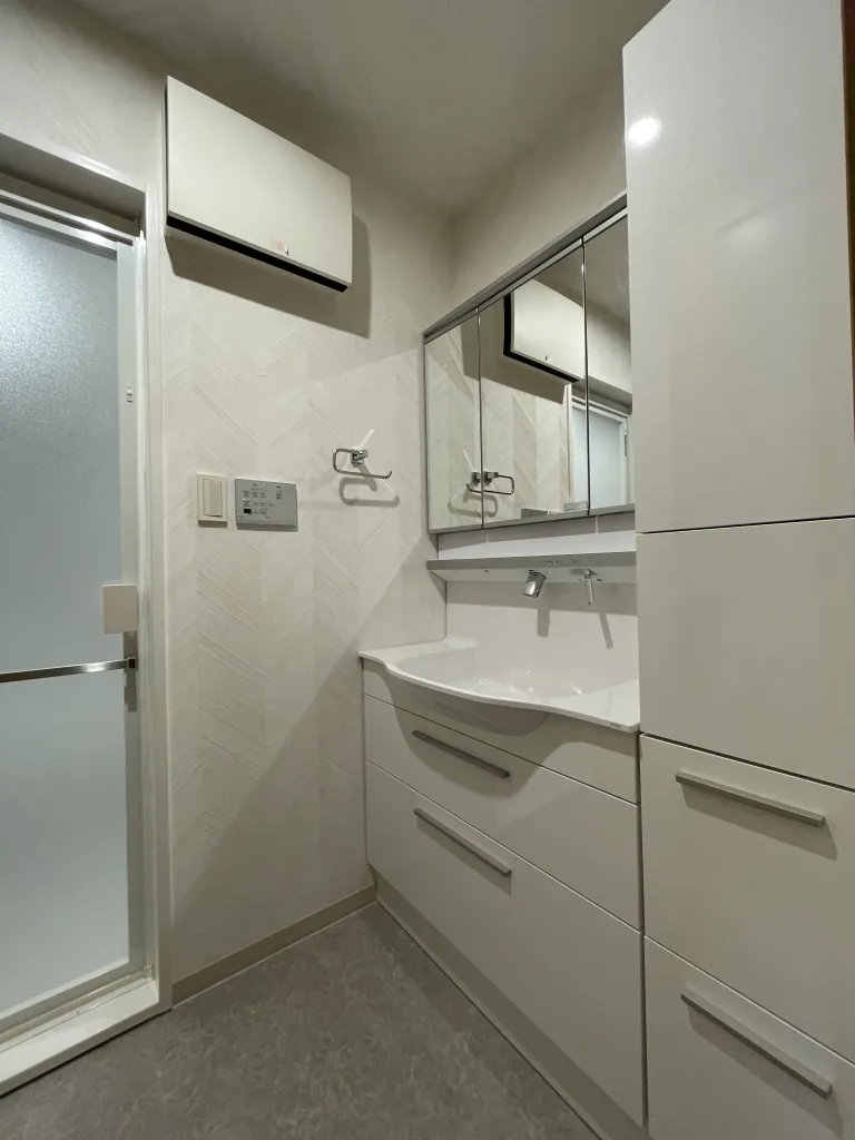 洗面所も見違えるようにクリアな空間になり、収納棚も使い勝手良く快適です。