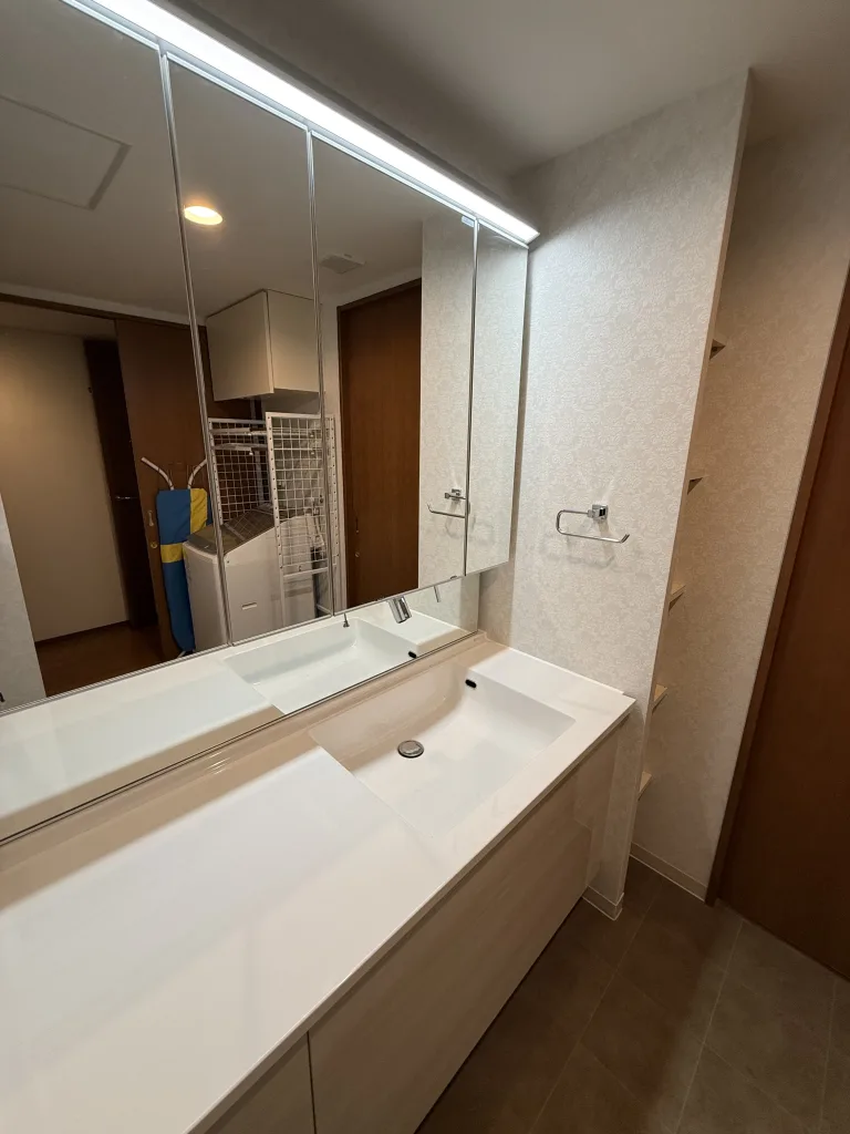 ライトも明るく、顔が前より良く見えて、化粧もしやすいです。ぴったりサイズにしたので二人並んでも余裕で使えるし、全面鏡張りなのでどこに立っても見れます。妥協せず、ルミシスにして良かったです!