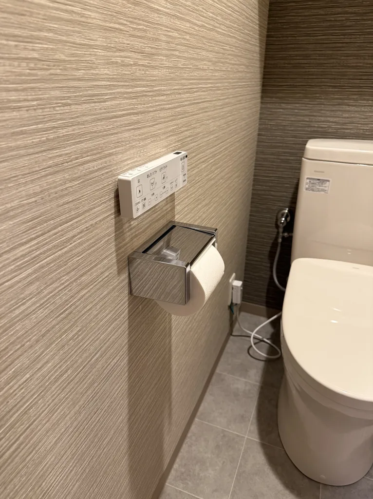 お選びいただいたトイレ本体はTOTO製ピュアレストEXとウォシュレットはアプリコットF1Aというタイプです。紙巻器もTOTO製です。