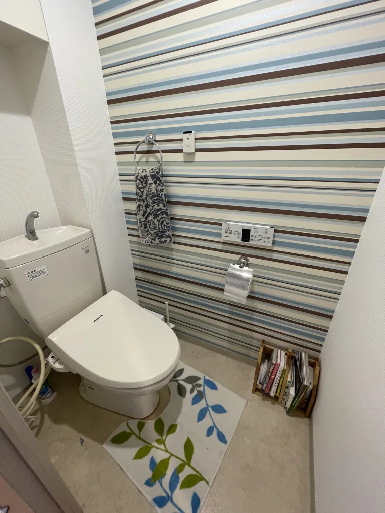 トイレは全自動お掃除トイレのPanasonic製アラウーノS160タイプ1Kです。室内の内装も貼り替えました。