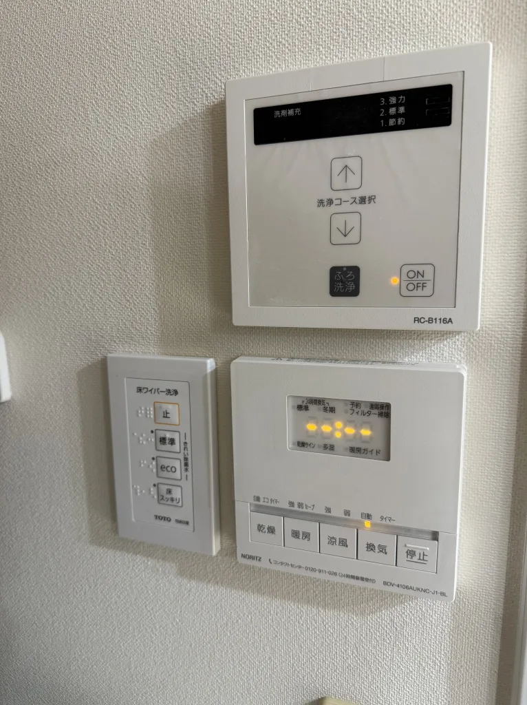 掃除面はボタン1つで浴槽の掃除をしてくれるおそうじ浴槽と床の掃除をしてくれるおそうじ浴槽を付けました。
